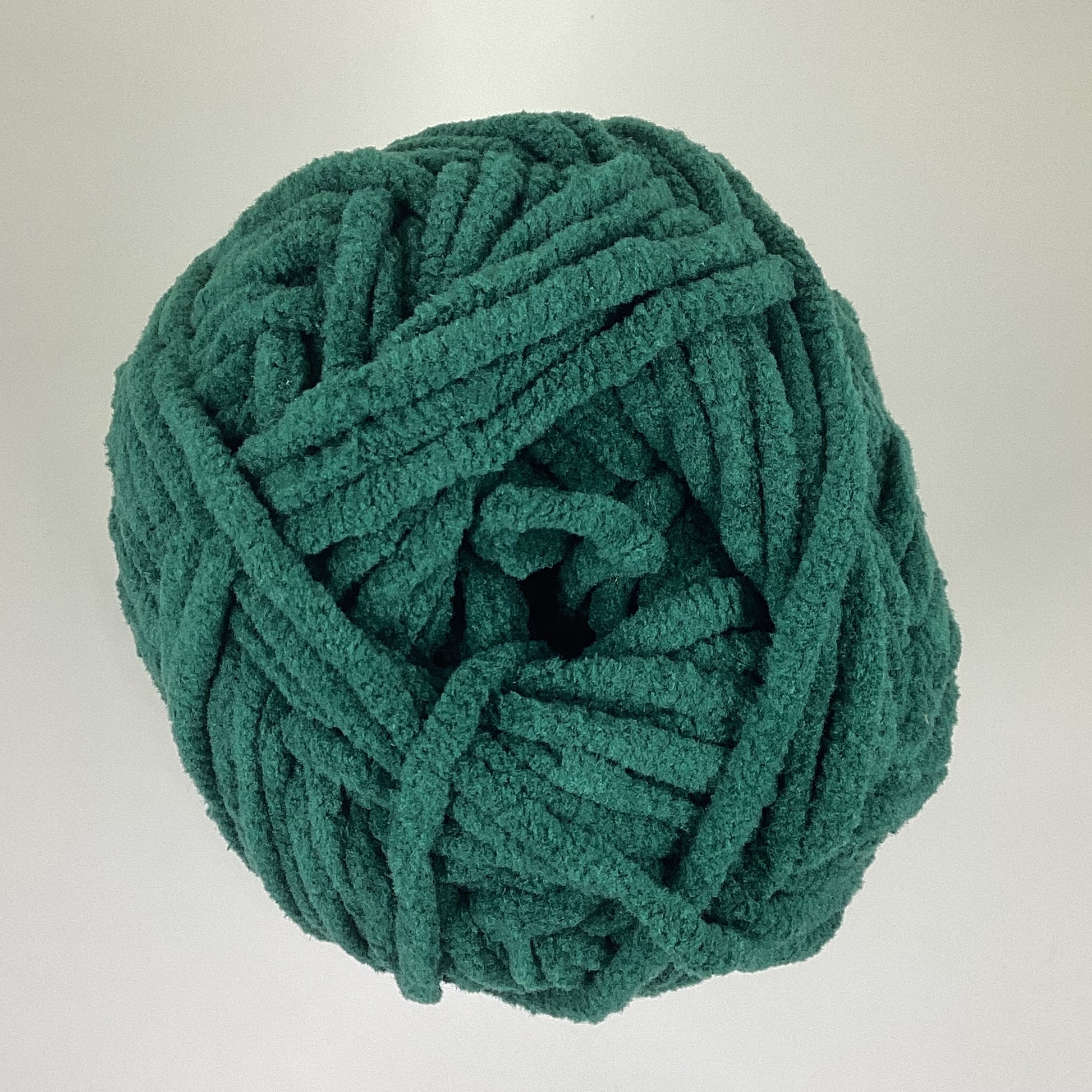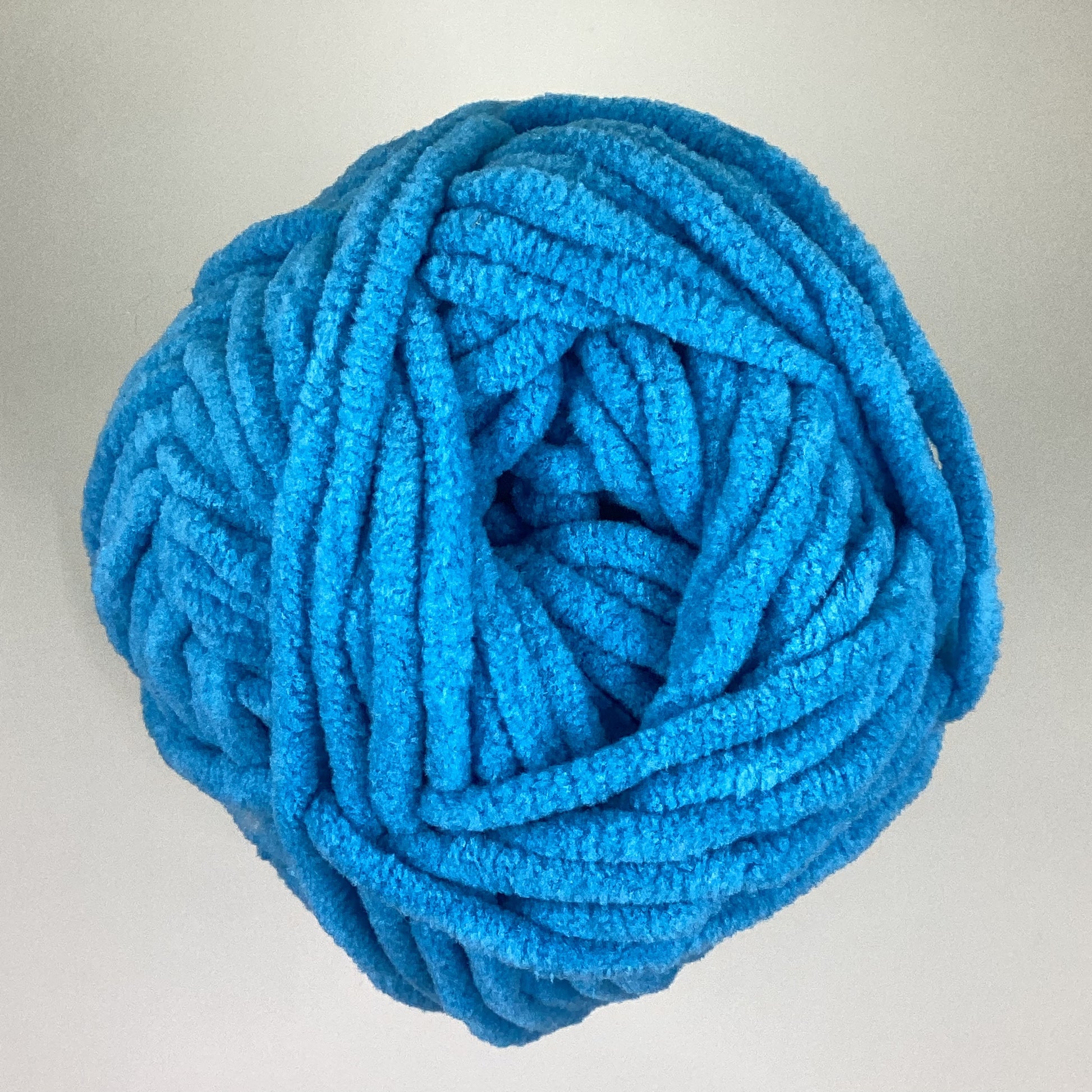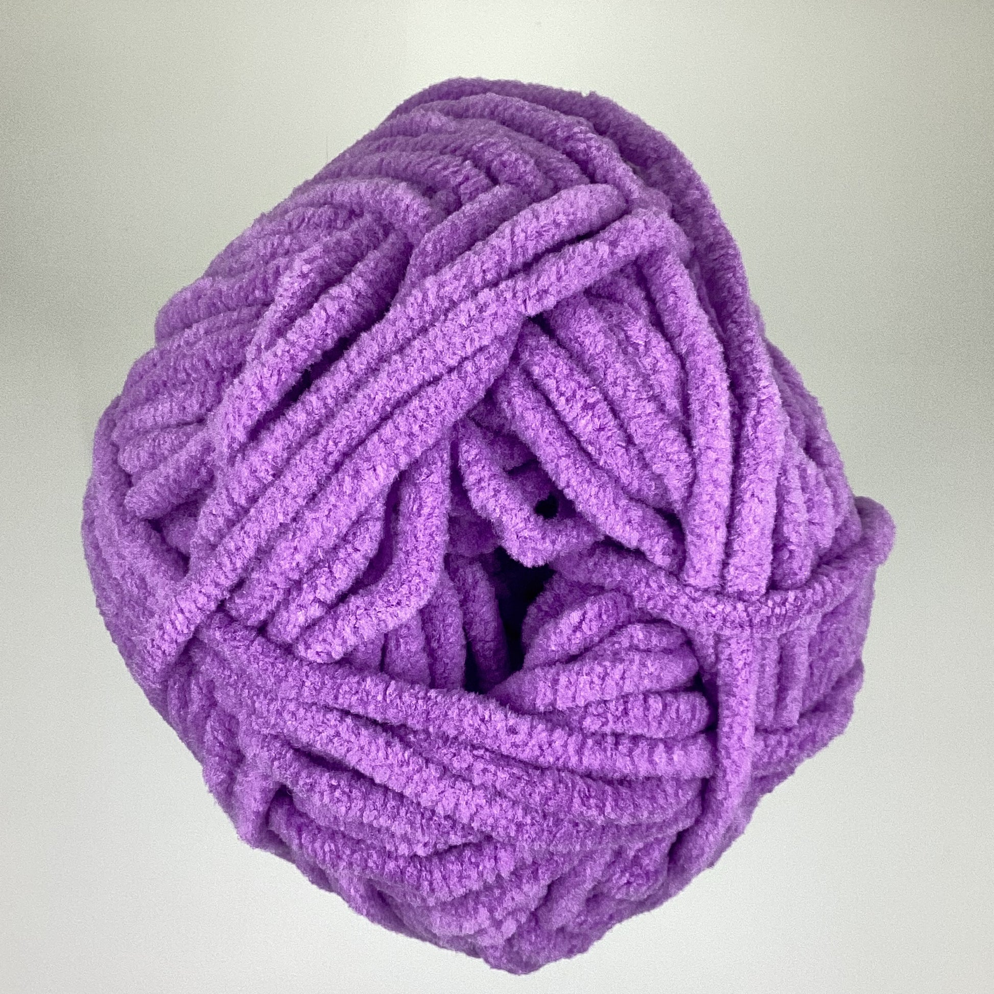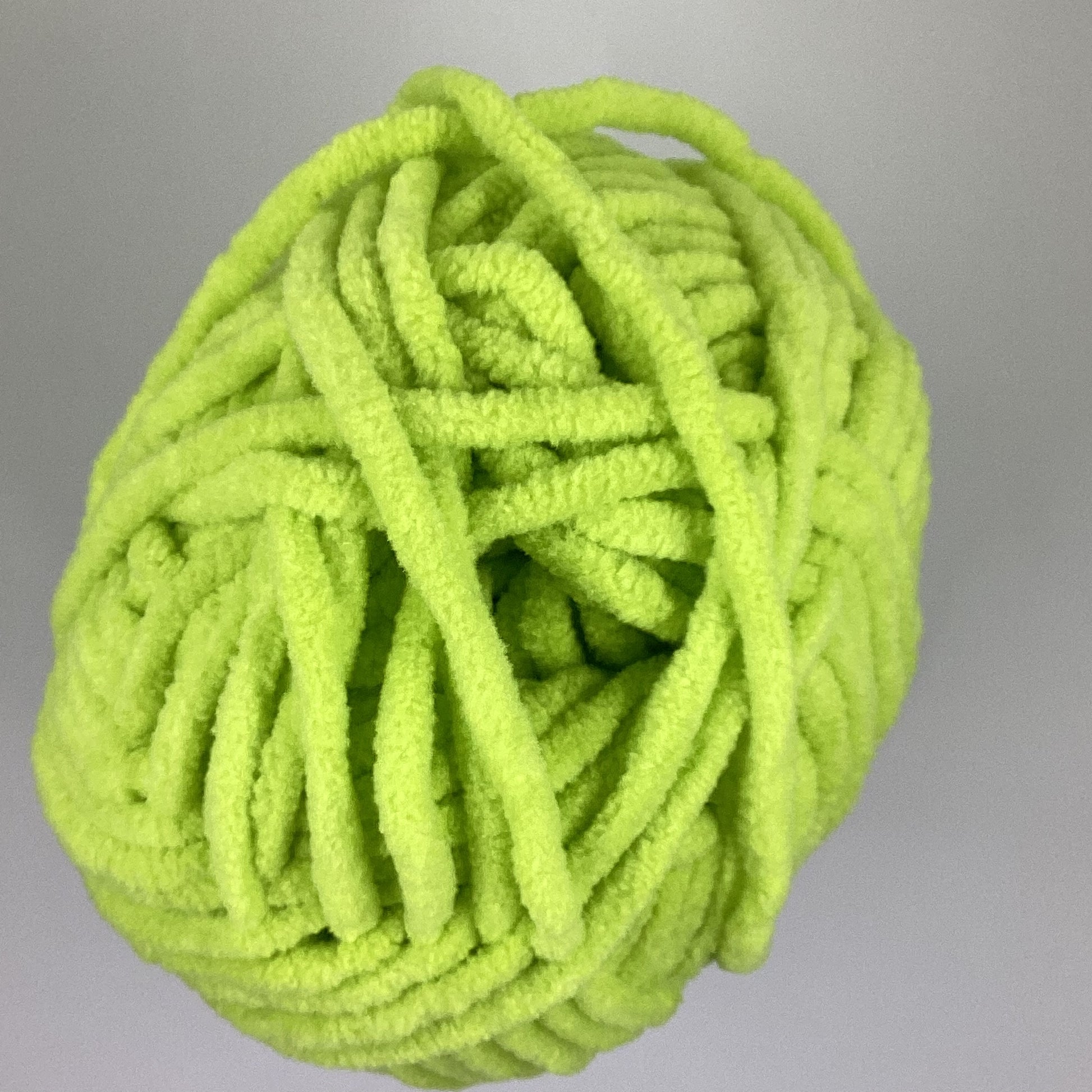 Knotty Ball yarn is 100% polyester and is approximately 120 yards/100g per roll. It is a size bulky 5 weight yarn. I personally use a 5MM hook when I crochet but everyone is different.