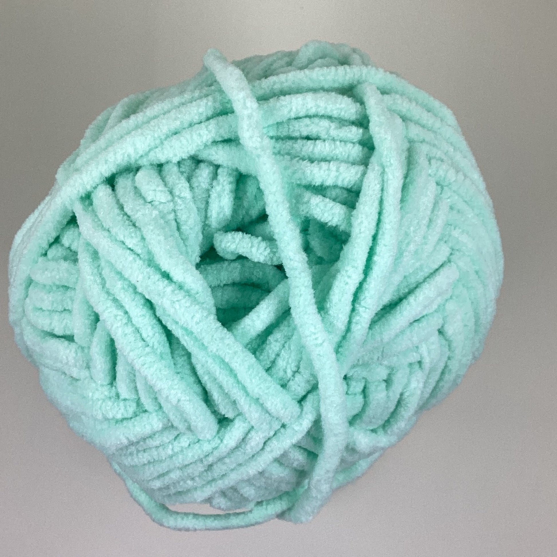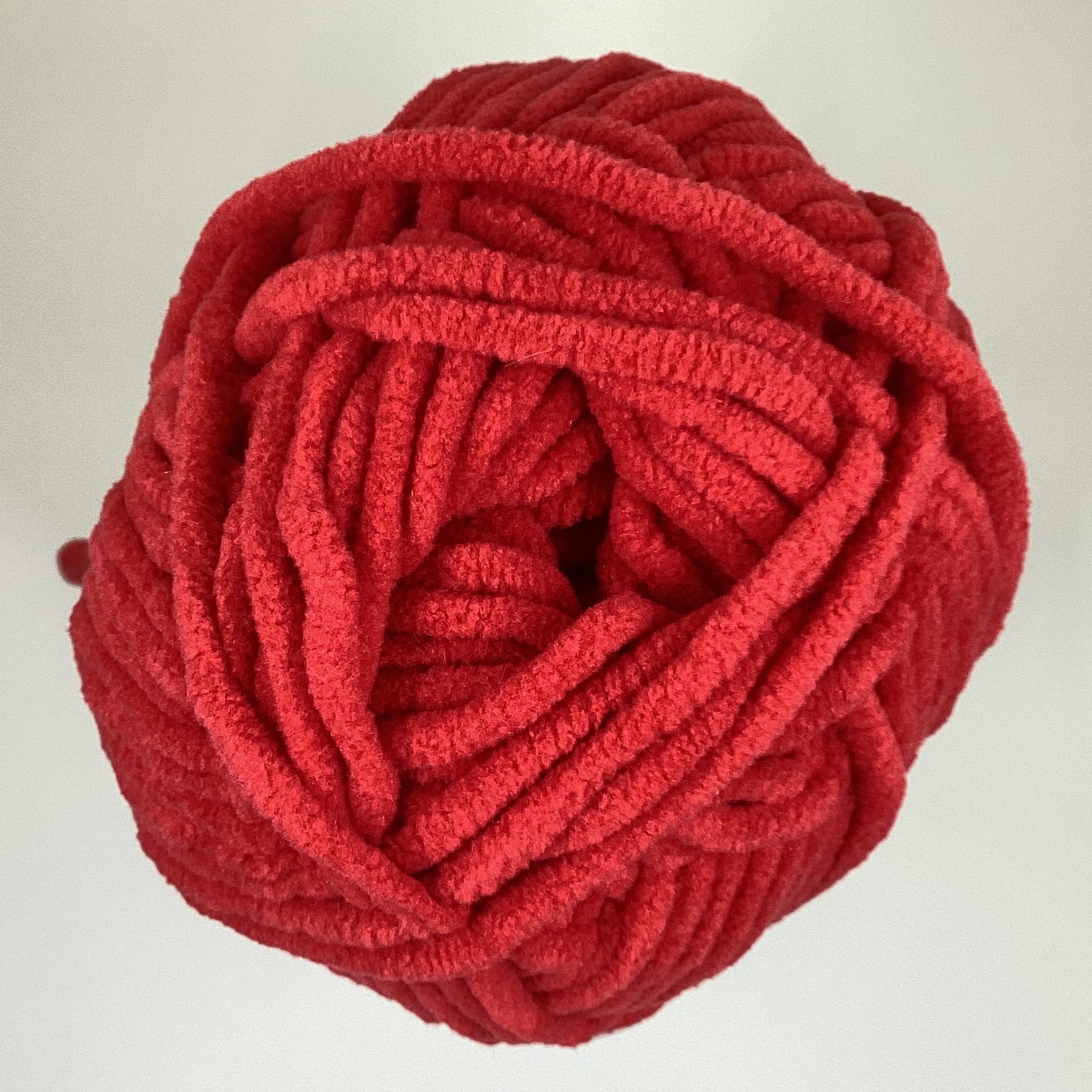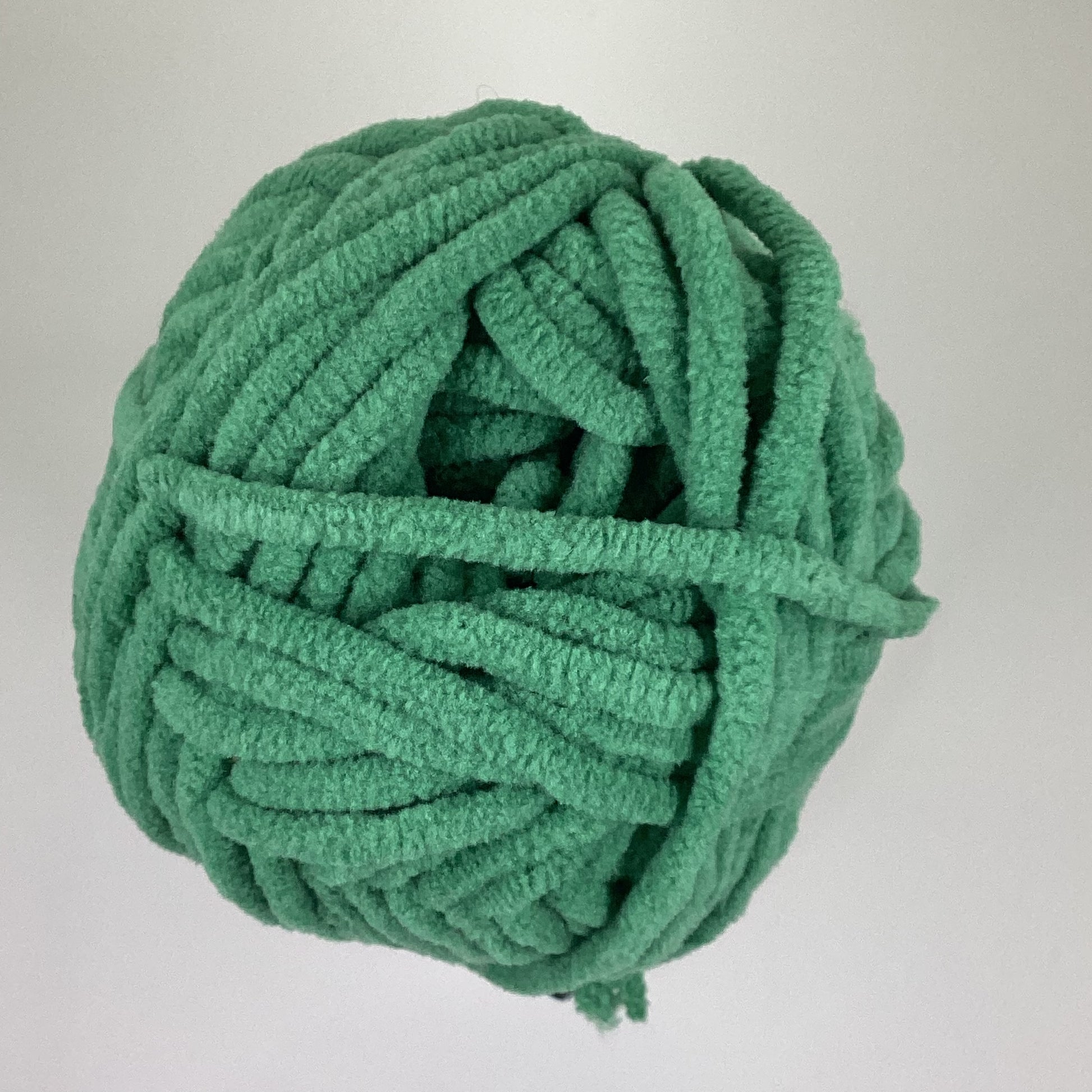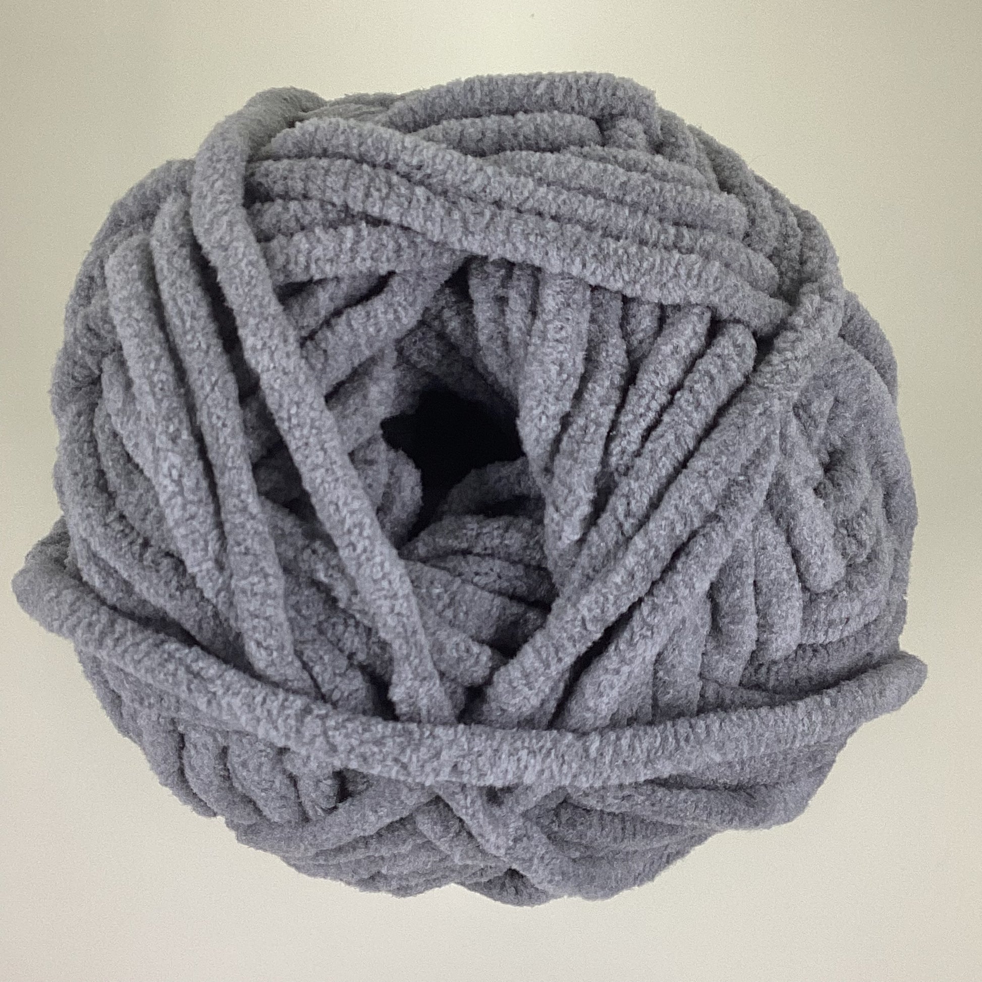 Knotty Ball yarn is 100% polyester and is approximately 120 yards/100g per roll. It is a size bulky 5 weight yarn. I personally use a 5MM hook when I crochet but everyone is different.