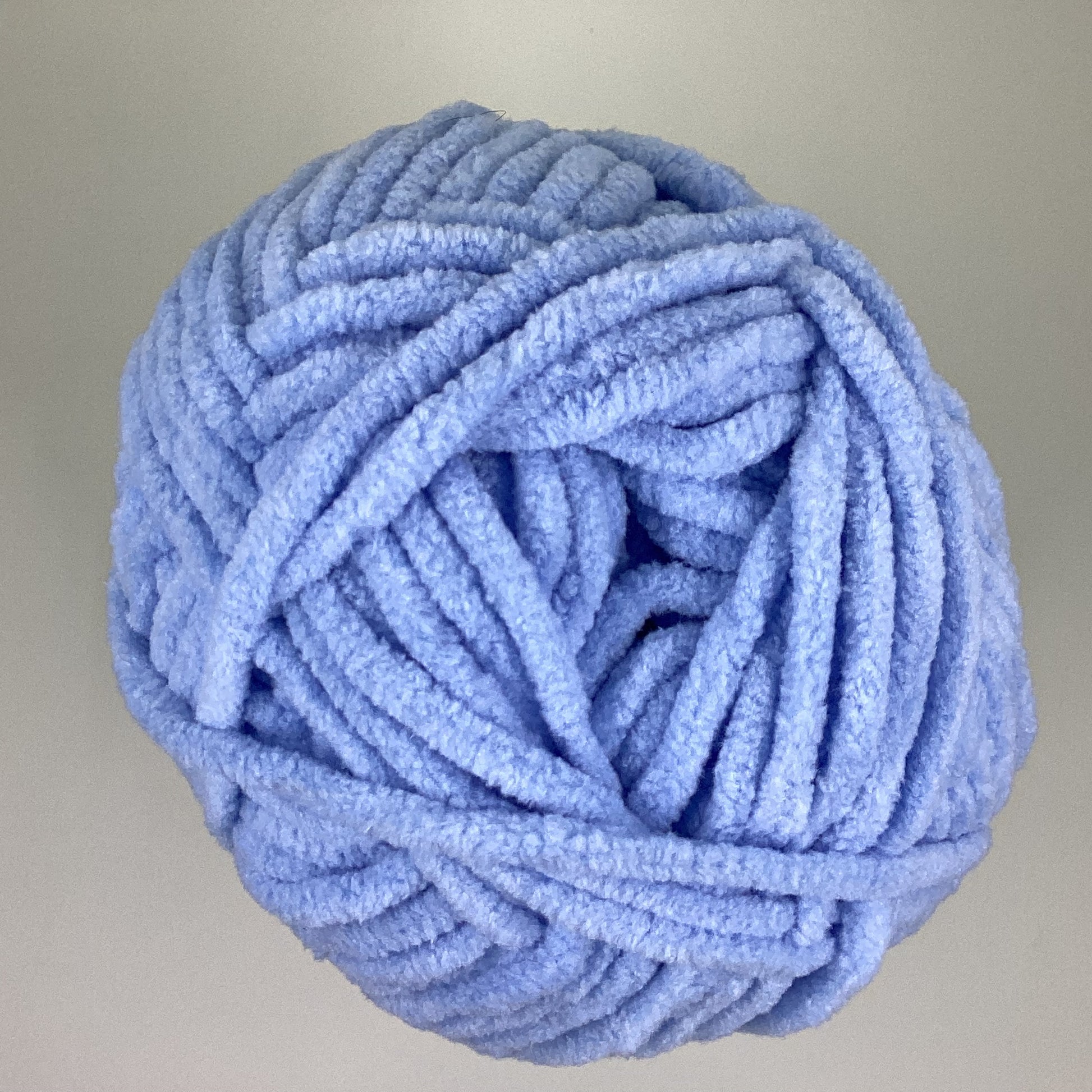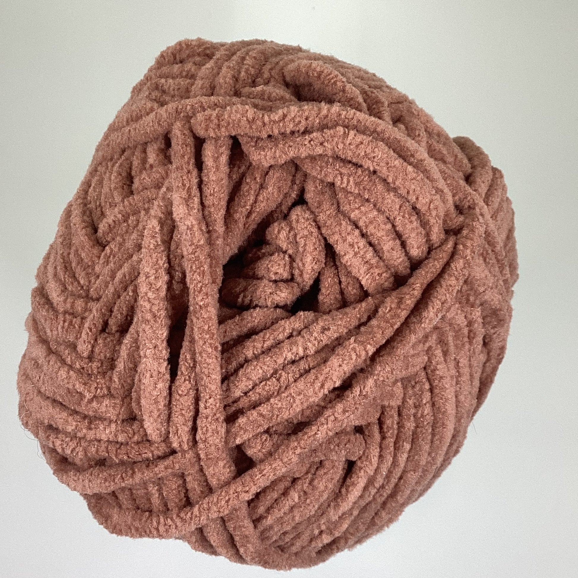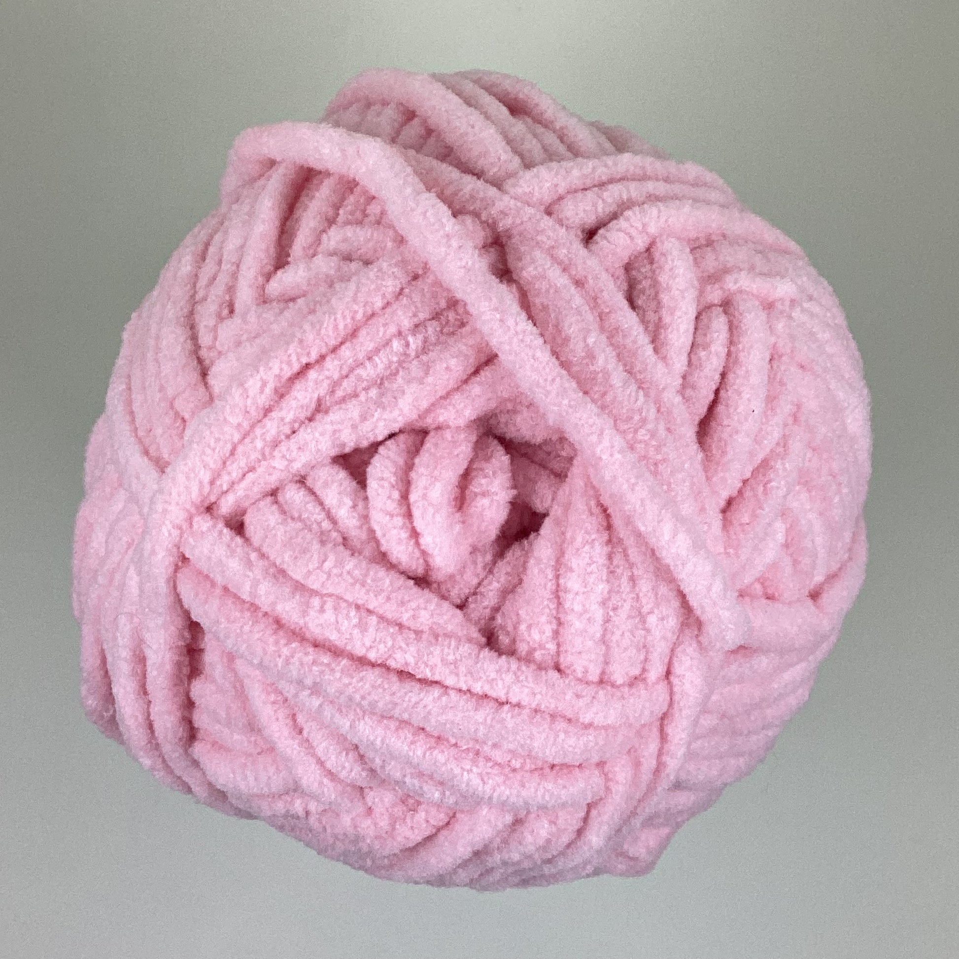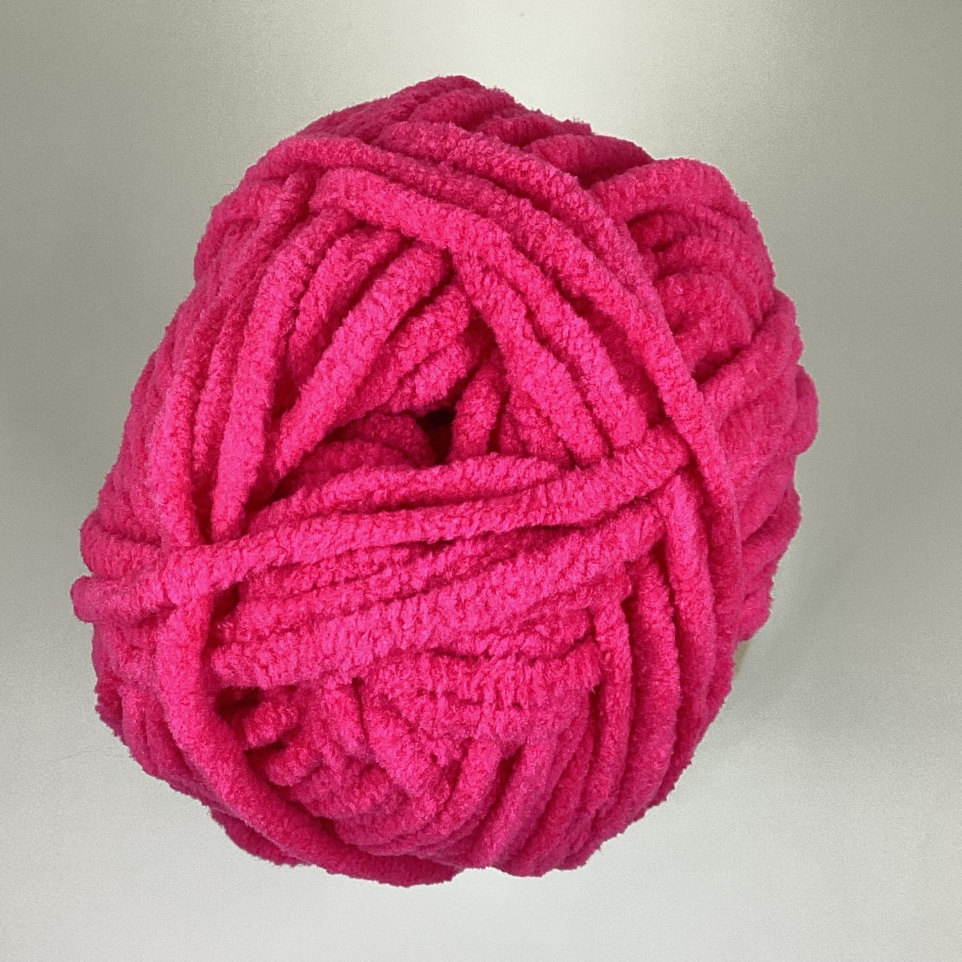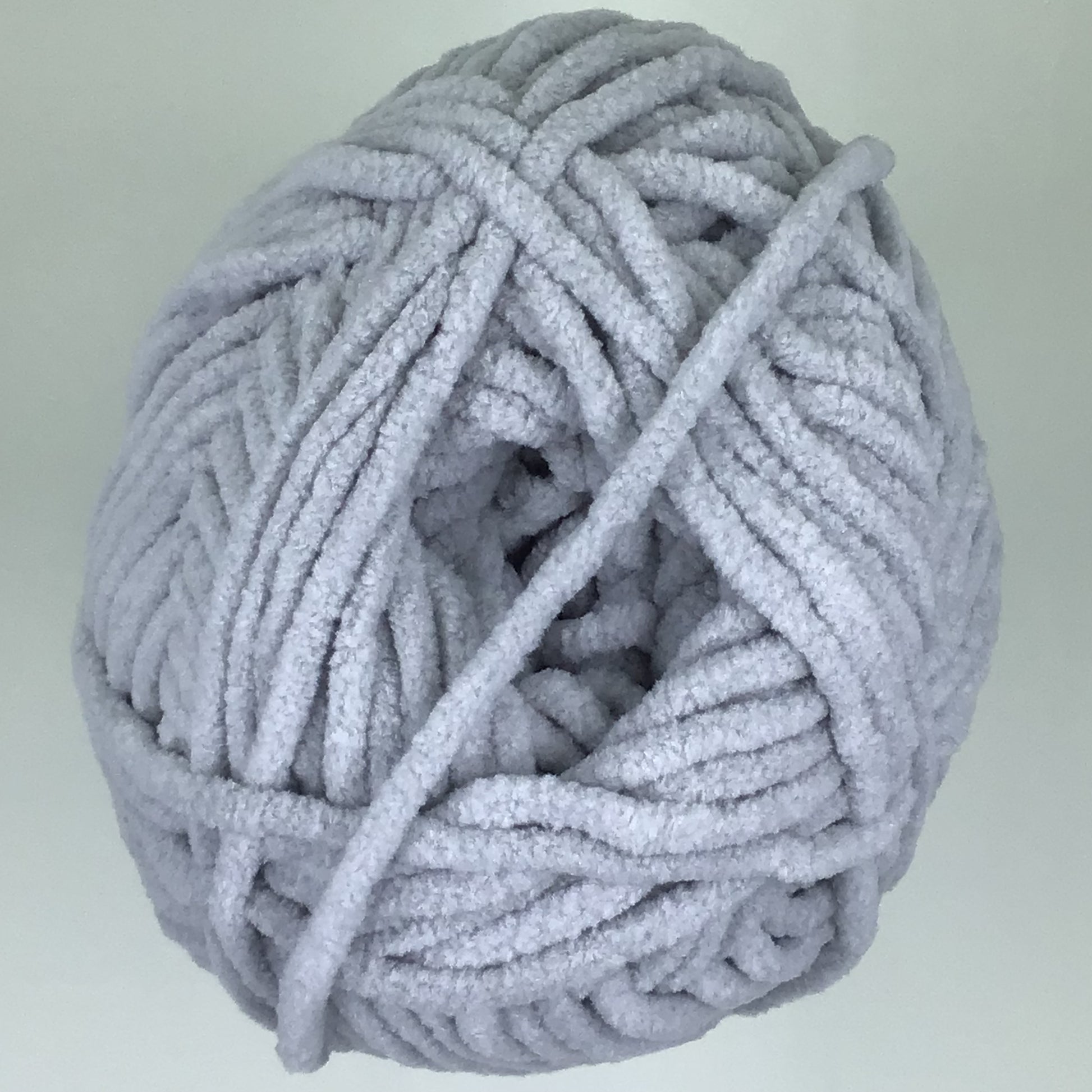 Knotty Ball yarn is 100% polyester and is approximately 120 yards/100g per roll. It is a size bulky 5 weight yarn. I personally use a 5MM hook when I crochet but everyone is different.