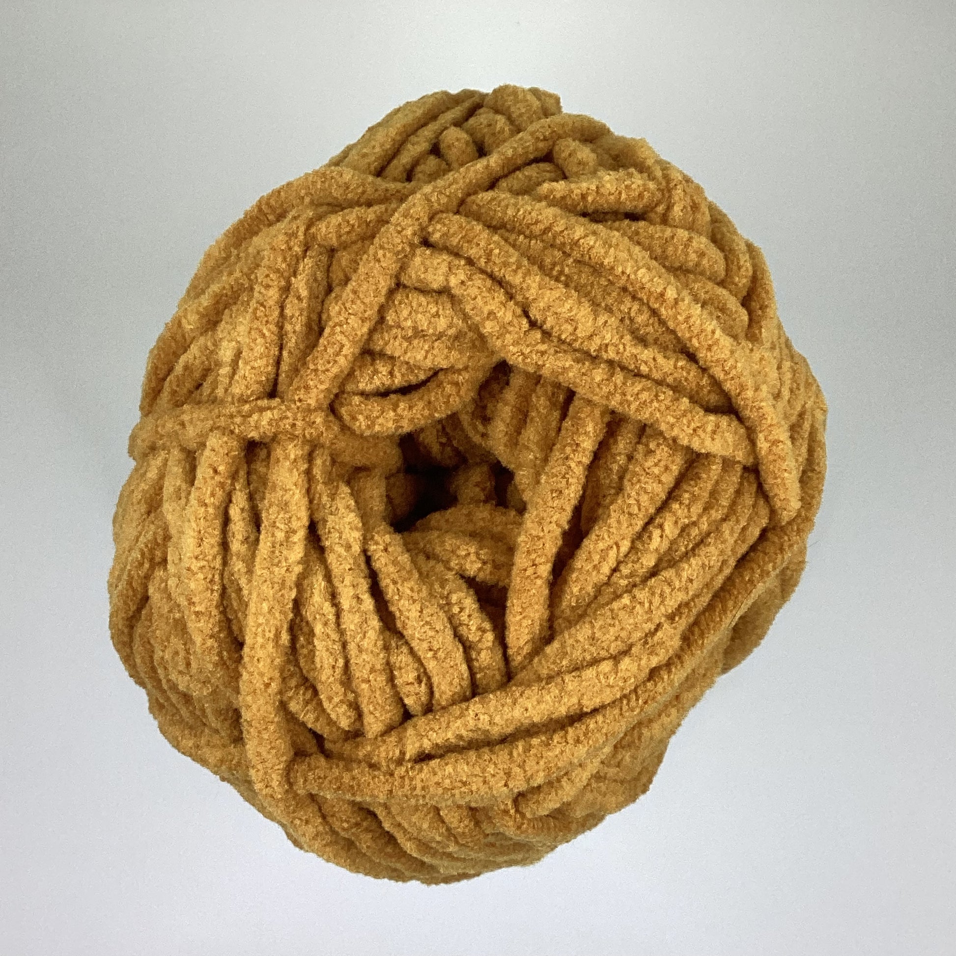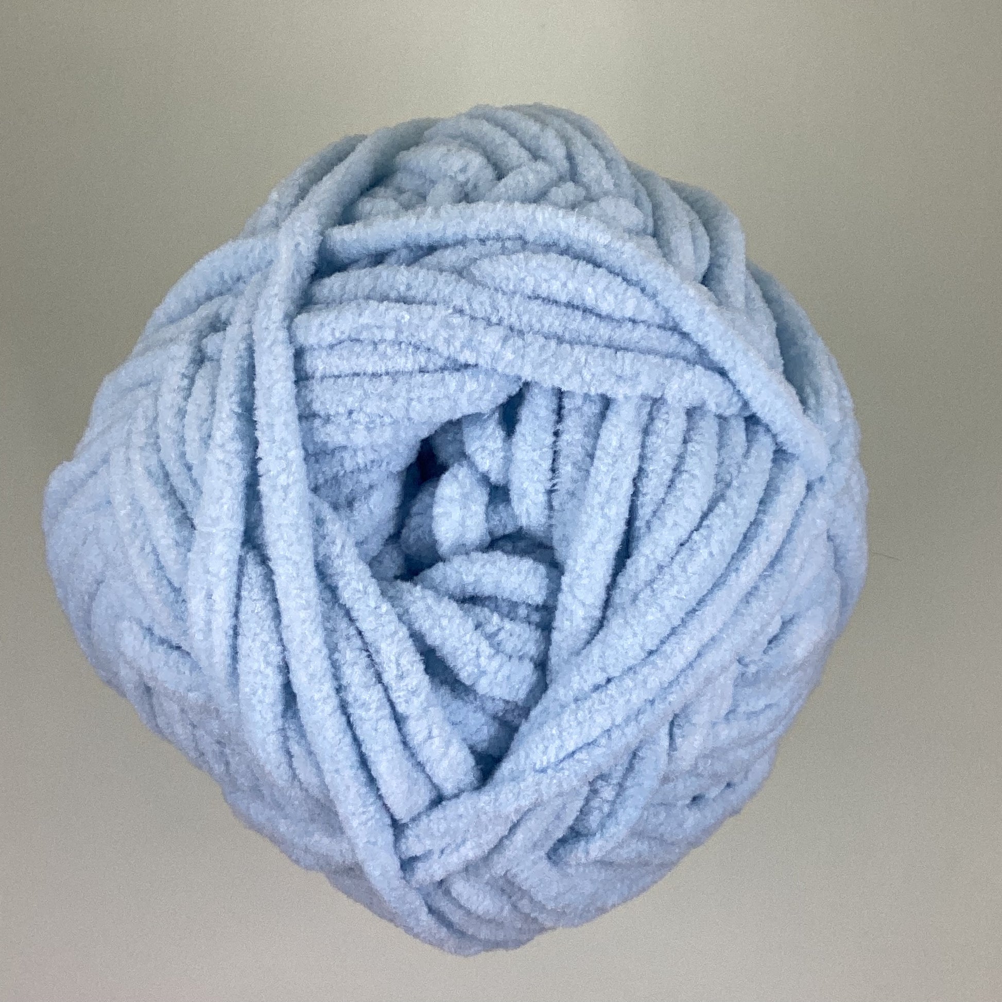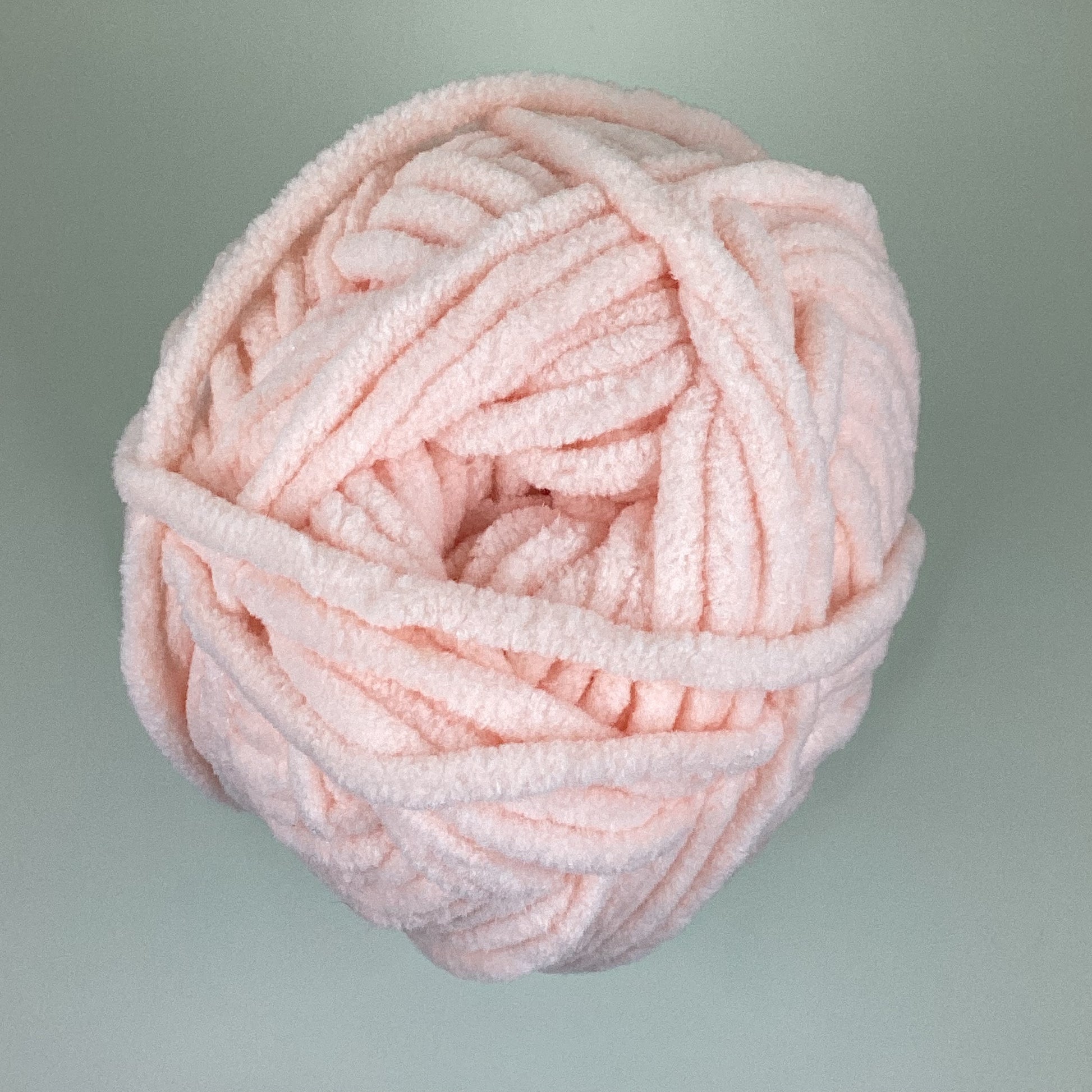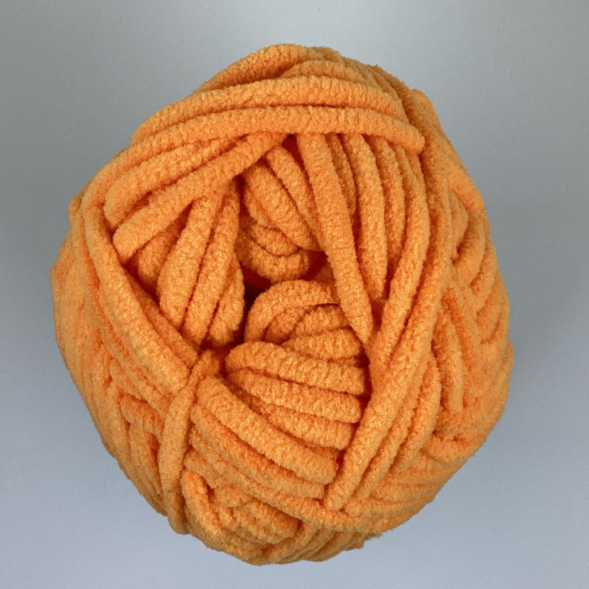 Knotty Ball yarn is 100% polyester and is approximately 120 yards/100g per roll. It is a size bulky 5 weight yarn. I personally use a 5MM hook when I crochet but everyone is different.